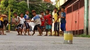 So what the other people are supposed to do is simply knock down the can. When you throw the slipper/shoes you need to quickly retrieve before the tagger/it tag's you. But if you cannot retrieve the slipper, another person will help retrieve it by throwing the slipper. As for the tagger/it, if a slipper lands close to the can, they have to put one of their foot on the can and the other on the slipper near the can. If you get tagged by the tagger/it you will become the new tagger.